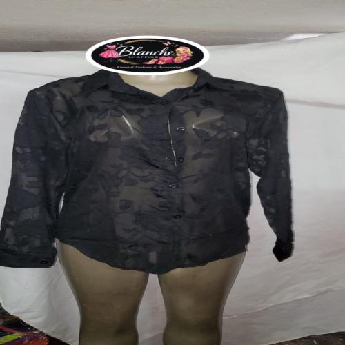 Chemise Noire Transparente Manches Longues | Blanche Shopping
