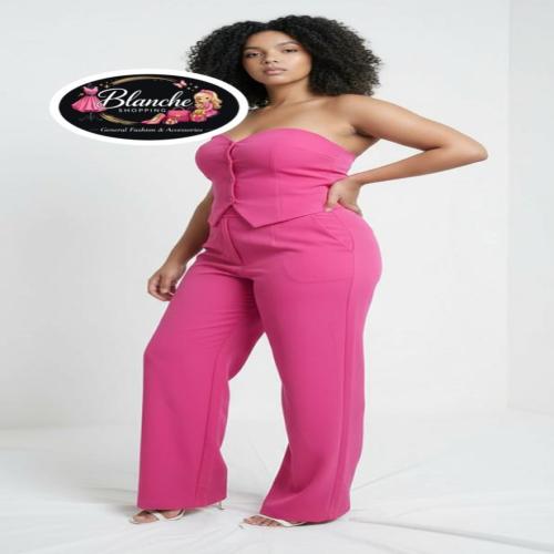 Ensemble Rose Sans Manches & Pantalon | Blanche Shopping
