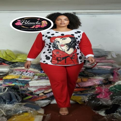 Blouse Manches Longues & Pantalon Rouge | Blanche Shopping